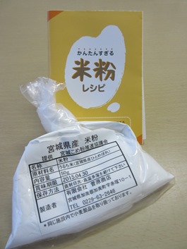 米粉の普及ということで、50gに小分けしたひとめぼれの米粉(菓子・料理用米粉)を