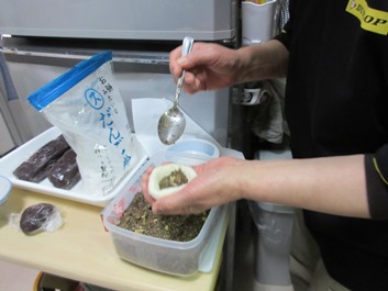 その後、郷土料理ひょうず団子の作り方を教えていただきました。