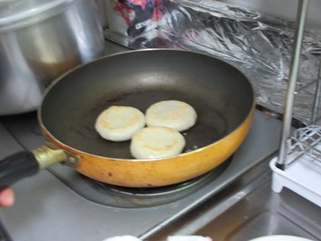 あんこの入ったほうは油をひいて焼きます。