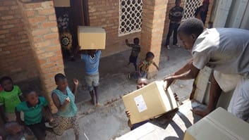 約12トンの米粉が船旅とトラックで3ヶ月かけて、アフリカのマラウイに到着しました。