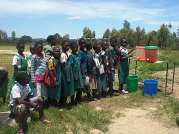 みんな並んで、手を洗って