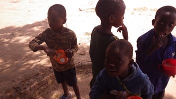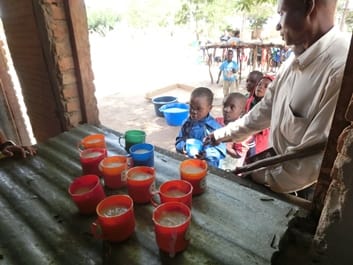 給食作りの様子。ポリッジというおかゆです。