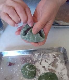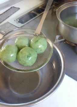 ピカピカの緑のきれいなお団子の出来上がり!