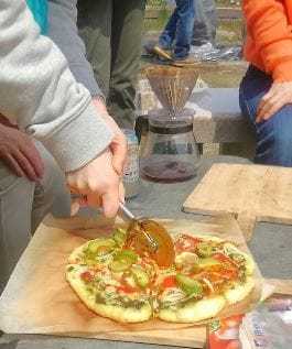 弘毅先生のポコ農園で、米粉ピザを作りました。