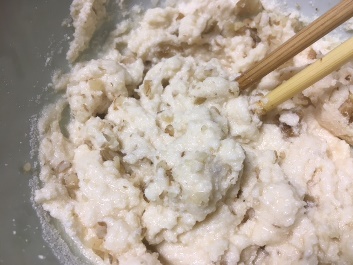 粘りが出るように箸でかき混ぜます。