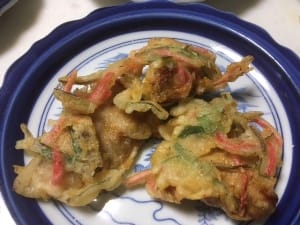 醤油とお酒で下味をつけたブリに、米粉をまぶし、衣をつけて揚げます。