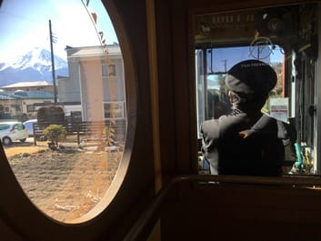 かわいい富士山列車に乗り河口湖駅まで