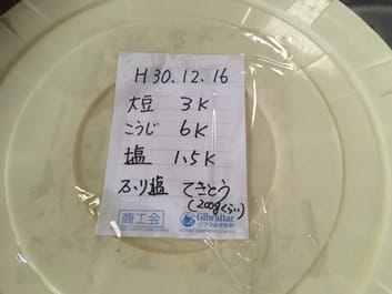 麹を大豆の量の2倍入っているので甘めのお味噌ができる予定です。