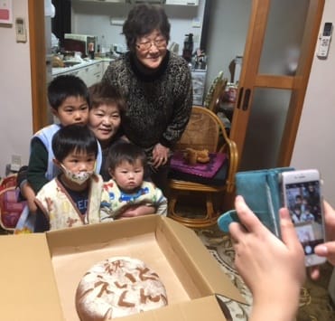 一升の餅米を搗いて子供の背中にしょわせてお祝いをします。