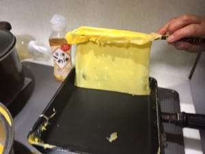 米粉を入れて卵を焼くと、