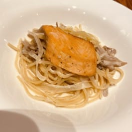 ふわっとした鮭と濃厚クリームは、もちもちの麺と相性抜群👍