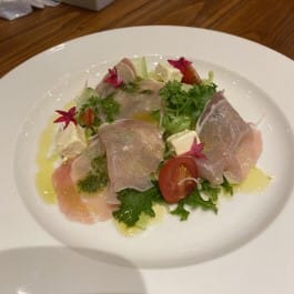 ワインビネガーでさっぱり、生ハム・チーズでこってりのハーモニーが最高🎵