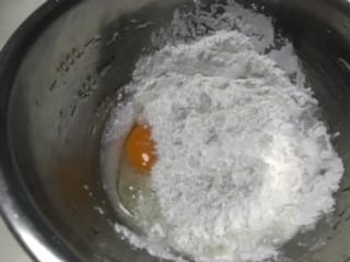 玉ねぎのみじん切りとひき肉を炒めたものを混ぜてビニール袋で混ぜ混ぜ