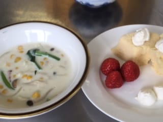 今回の米粉メニューは、蒸しシフォンとシチュー