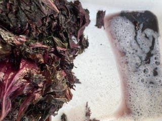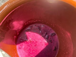 さらにその汁で揉むとますます鮮やかな液体が増産させます。手も真っ赤!