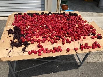 今回はあっちゃんちの梅と盛ちゃんちのあんずを梅干しにします。