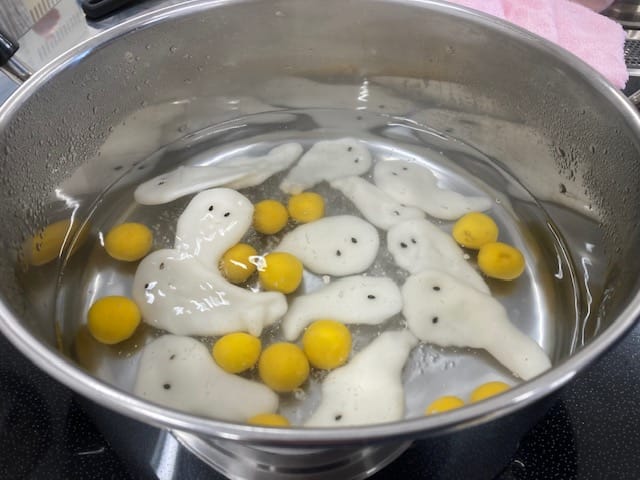 黄色いのは、チンしたかぼちゃをつぶしていれました。