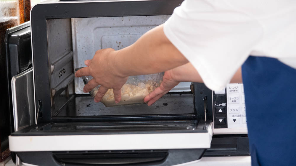 ラップをかけて、電子レンジで600W 3分加熱します。