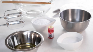 4、2のメレンゲに3を加え、泡が半分くらい消えるまで混ぜる
