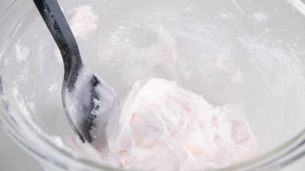 2、食紅で少し濃いめのピンクに染める