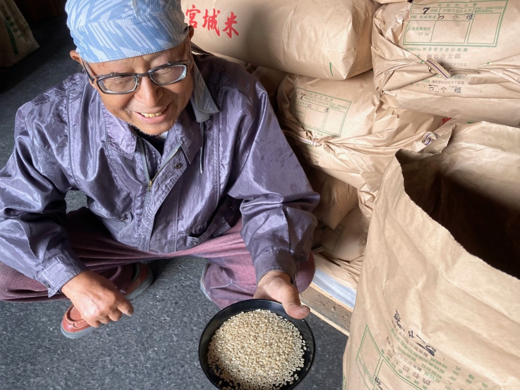 「米作りは、ヒト・モノ・カネ」だと話す渋谷さん。「朝夕田んぼを見て回って、水かけたり肥料あげたりして、秋に美味しいお米になりお金をもらうこと。片手間に作って金だけ高くしてけろではだめなのっしゃ」と笑って語る渋谷さんです。だからこそ菅原商店のブランド米なんだなぁとありがたく思いました。