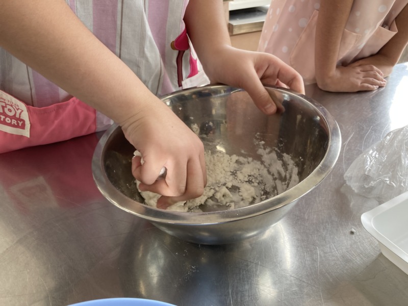 まず粉に対して8割のお水を用意します。100gの粉だったら80gのお水です。初めて作る人は面倒でも計った方が簡単です。 ボウルに粉を入れたら水を回しながら入れます。すぐに手を入れないでボウルをゆすって水を吸わせてください。それから捏ねると手にくっつきにくく、耳たぶくらいの生地が出来ます。