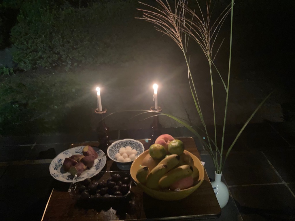 今日のお月見は残念ながらまぁるいお月さまは見られないような…