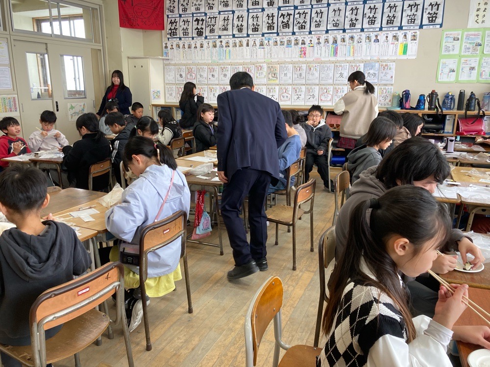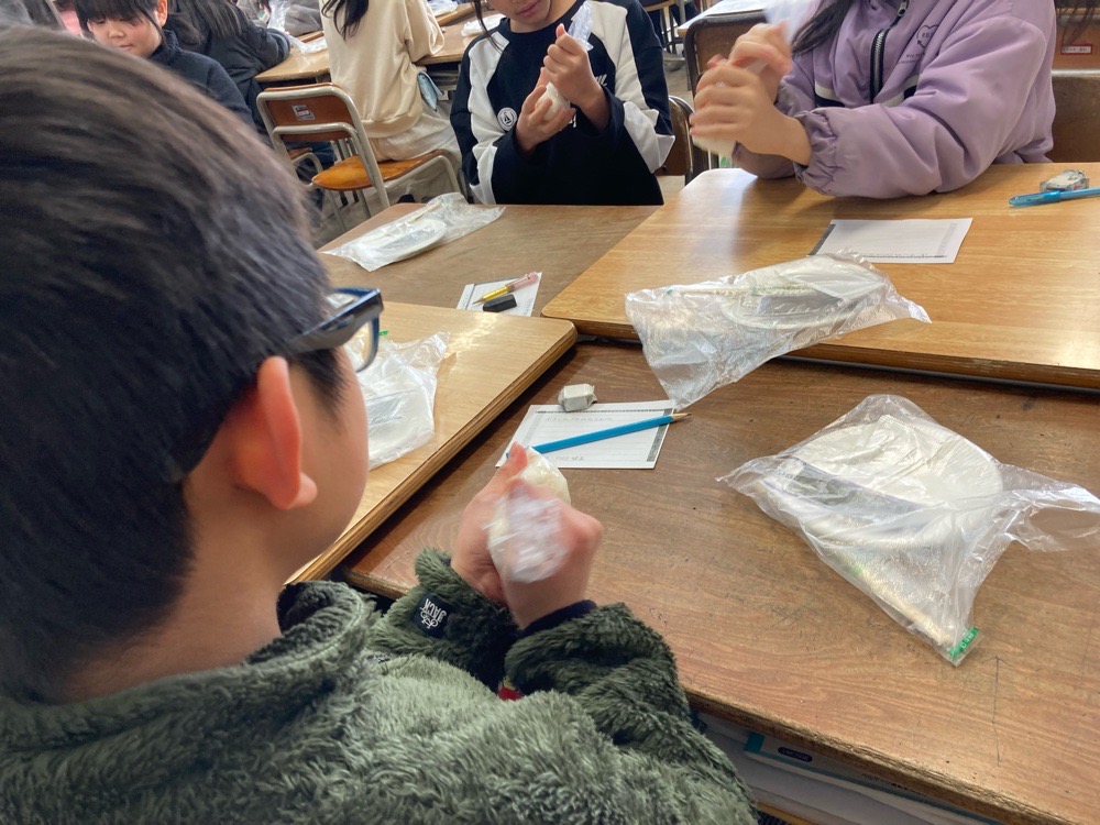 古川第五小学校4年生のみなさんと防災の授業がありました。地域コーディネーターの波多野さん、地域のボランティアのみなさんと一緒に非常食としてチカラモチ作りをしました。東日本大震災は、家が倒壊したり、津波で家や車が流されたりして、多くの命が犠牲になりました。災害は起こってほしくはないけれど、いざという時のために訓練をすることはとても大事なことです。第五小学校は近辺で水害の被害が起きたりするので防災の授業がしっかり行われています。電気やガスなどのライフライン止まったら、いつも食べてる料理は食べられません。食べることは生きること、そういう時に活躍するのがチカラモチと安心君です。